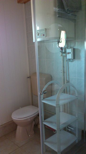 Es befinden sich zwei Schlafzimmer, die hinter einander liegen, ein Wohnzimmer, eine Küche und ein Badezimmer im Bungalow.